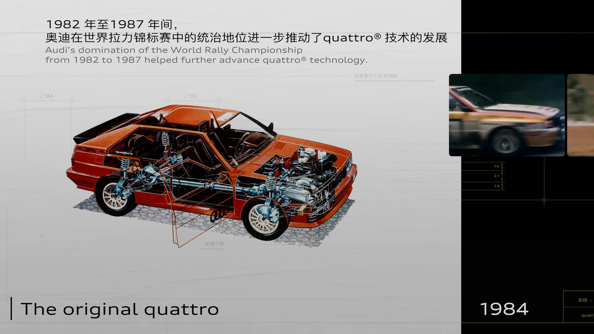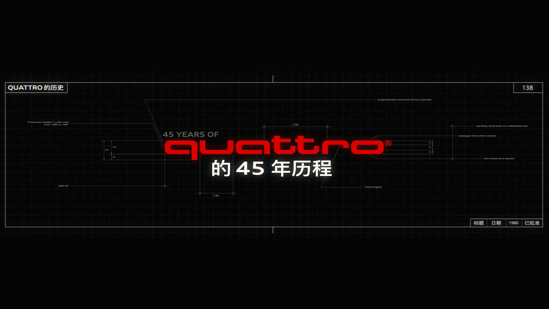 The 45 years of quattro film shows the history of the groundbreaking technology from inception to the latest advances. Given access to a vast library of rare footage and images from the past 45 years, we were able to tell the story on the main screen of the quattro performance area on the Audi booth in Shanghai.